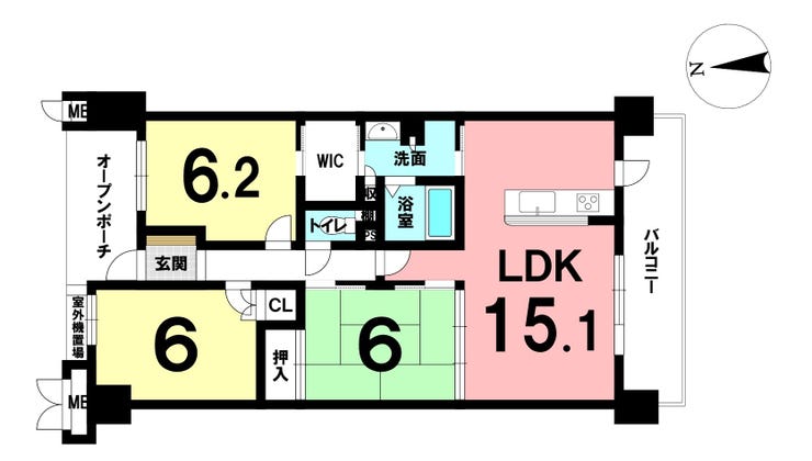 専有面積 壁芯 73.13㎡ 所在階 14階建/2階部分